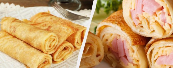 Estas panquecas são tão deliciosas que esta receita vai certamente tornar-se a sfavorita. Panquecas com fiambre e queijo / collage My, foto depositphotos.