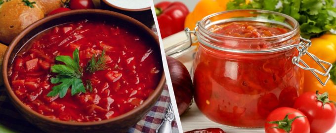 O útil e saboroso molho em frascos permite-lhe preparar borscht em 20 minutos. Molho de borscht para o inverno com couve e pasta de tomate No auge da...